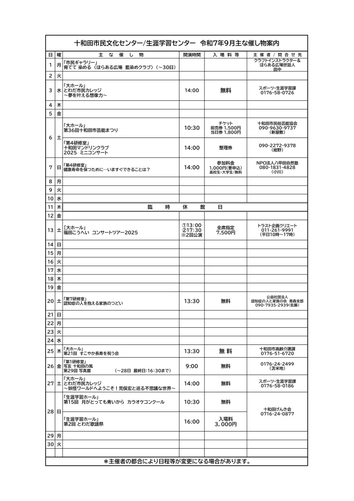 2025年9月イベントスケジュール