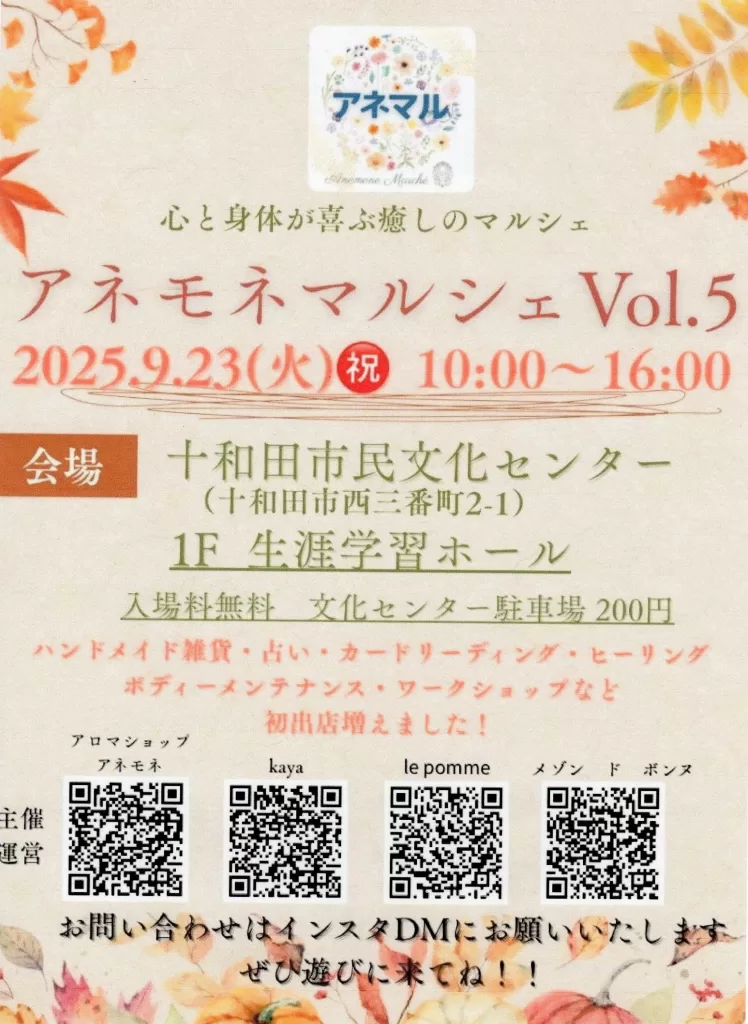 出店:ハンドメイド雑貨・占い・カードリーディング・ヒーリング・ボディーメンテナンス・ワークショップなど