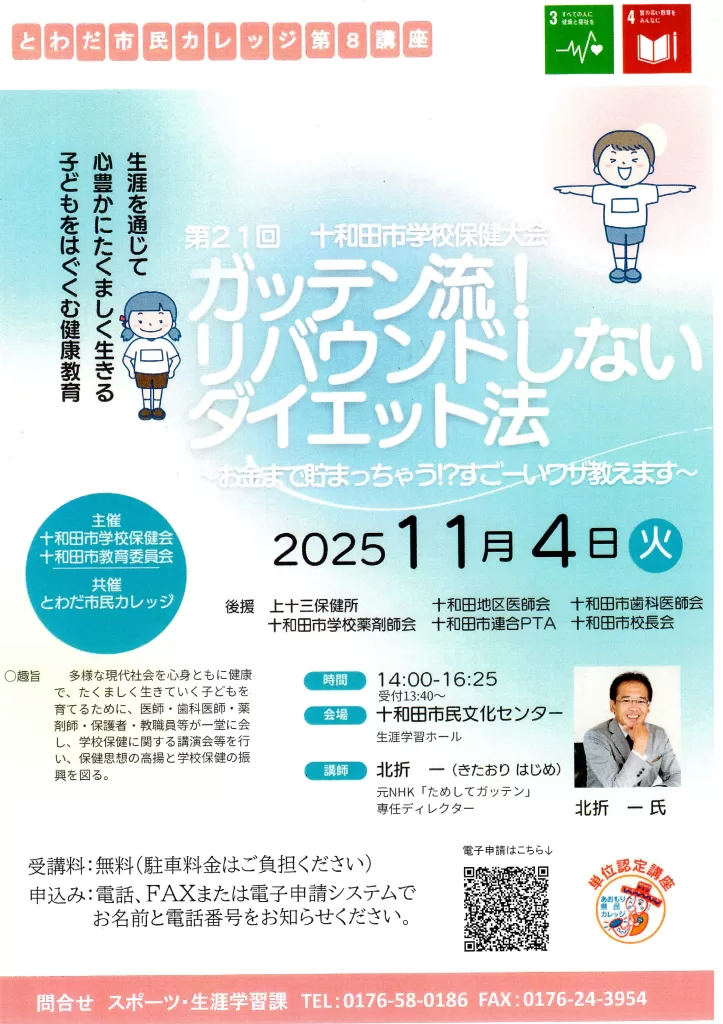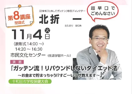 講演タイトル:「ガッテン流!リバウンドしないダイエット法~お金まで貯まっちゃう!?すごーいワザ教えます~」