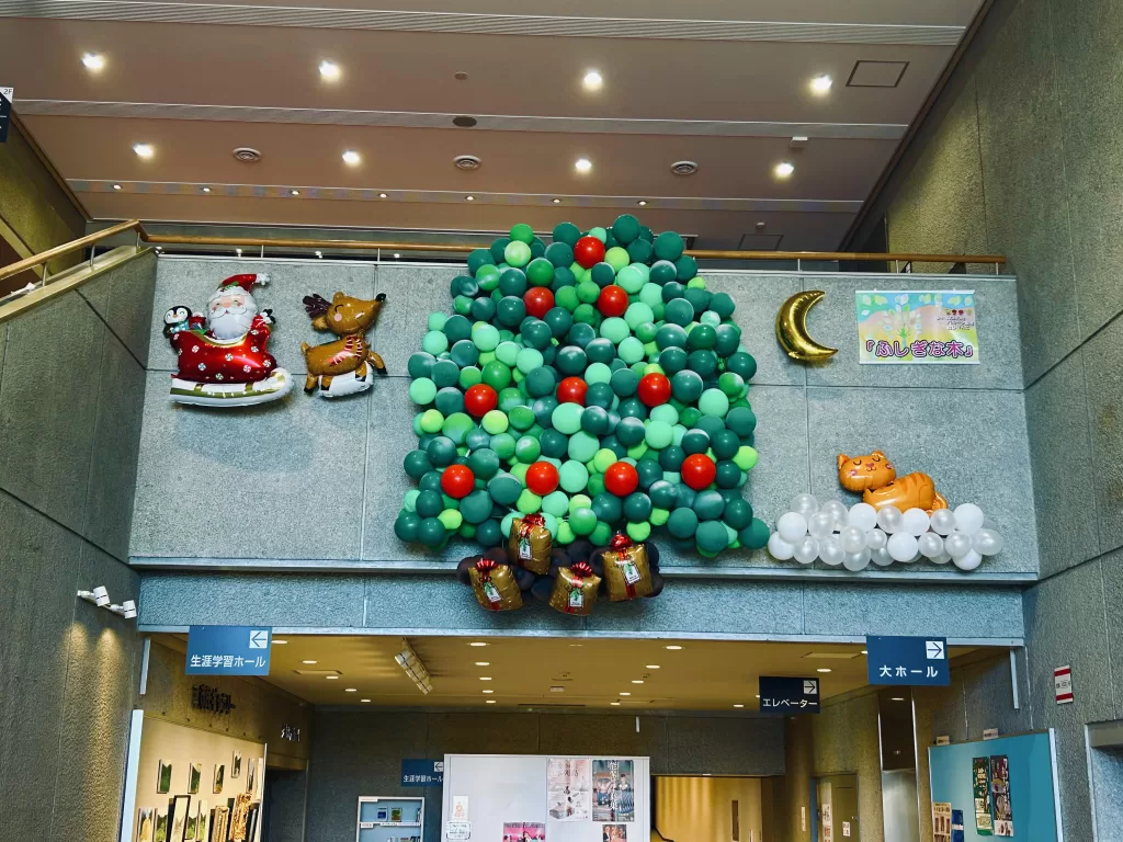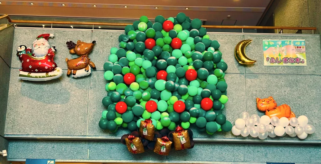 「ふしぎな木」クリスマスバージョンを、当館ロビー吹き抜けにて展示中です。