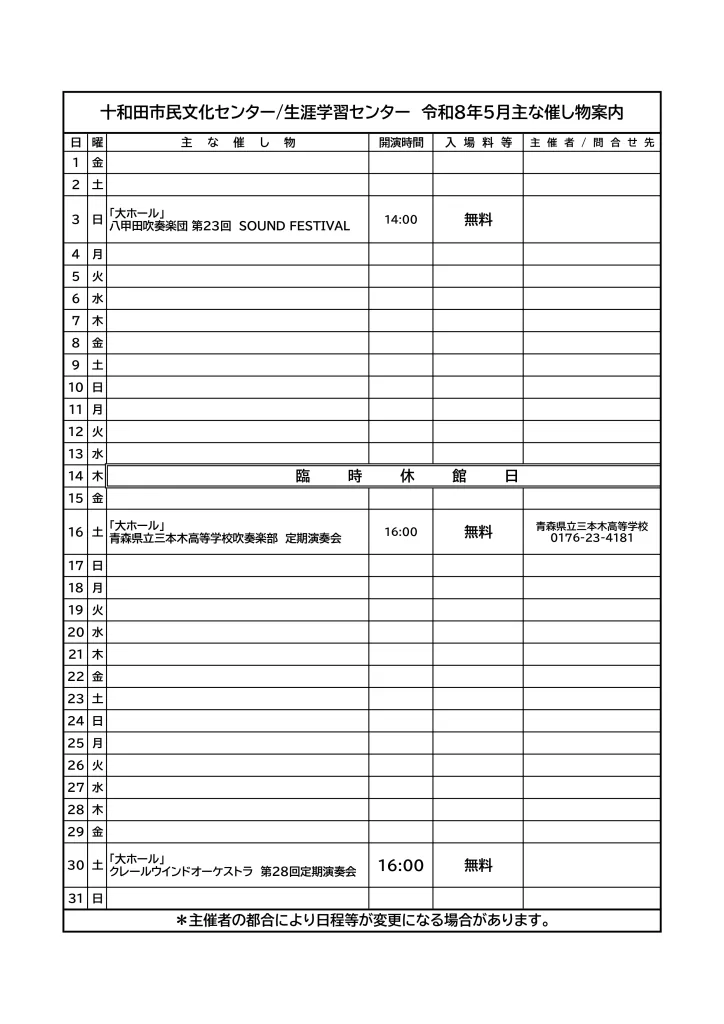 2026年5月イベントスケジュール