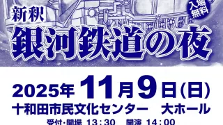 ・過去のイベント情報 20251109 十和田市こども劇団 第32回定期公演 新釈 銀河鉄道の夜 日時:2025年11月9日(日) 開場13:30 開演14:00 場所:十和田市民文化センター 大ホール 入場料:無料 2025.09.24 ・過去のイベント情報